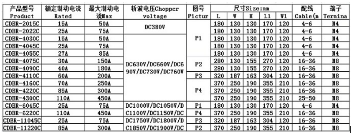 ? ? ? CDBR系列重載型制動單元電壓、功率范圍:220V-690V;15KW-400KW